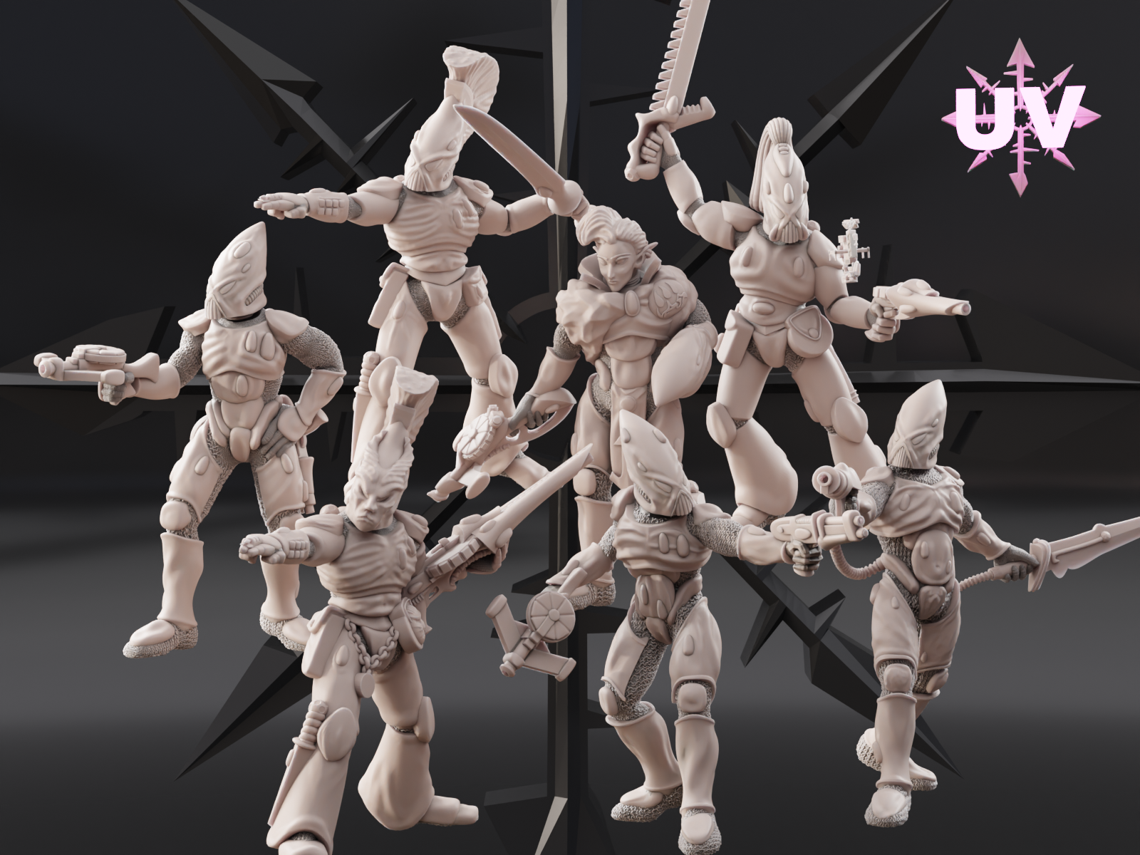 Set of 7 3d printed resin miniatures in 28mm scale. Shipped with 25mm bases.