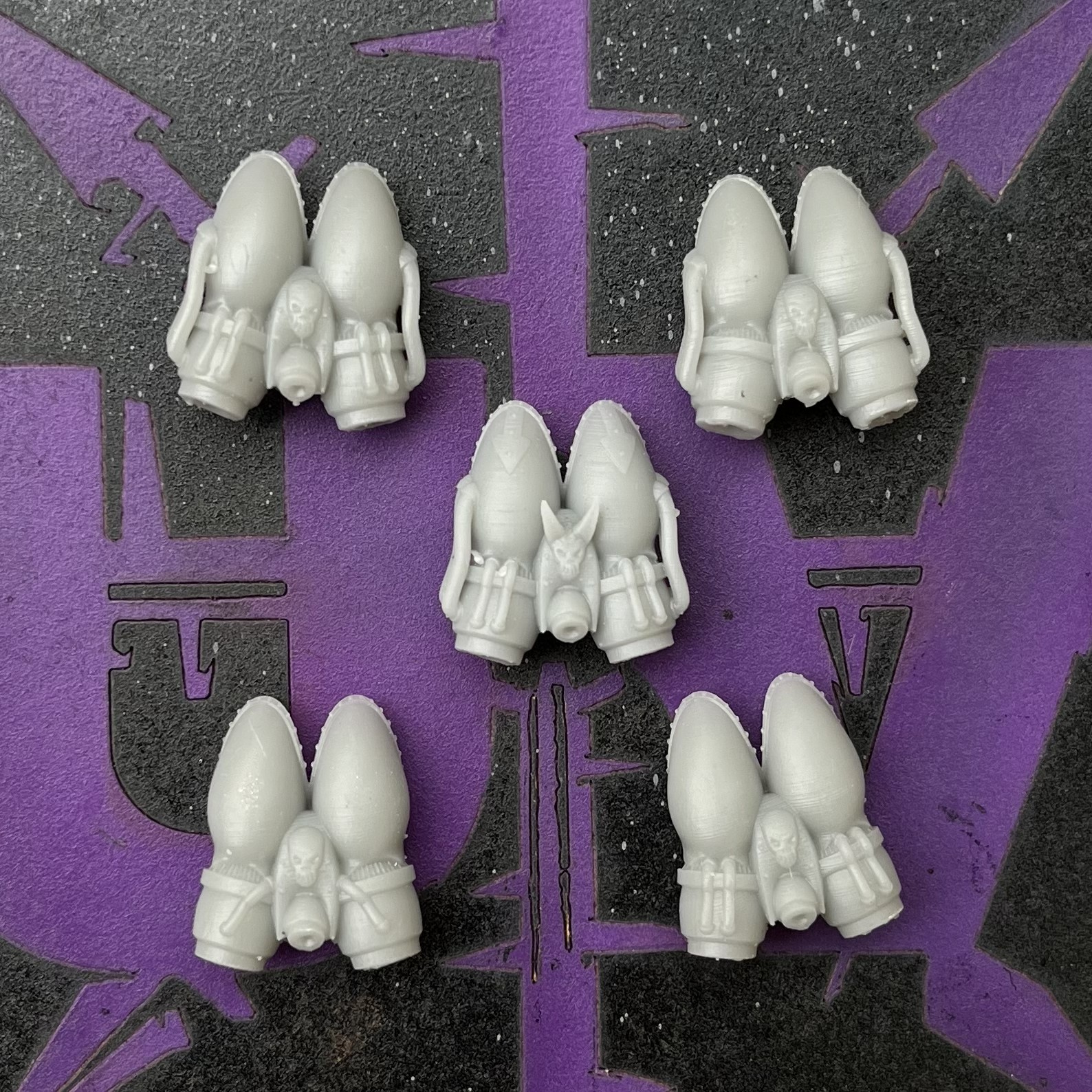 5 pcs 3d printed resin bits for 32mm miniatures.